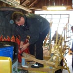 Es werden immer noch Kleider geschnitten und unser Wagen hat immer noch keine Verkleidung.
