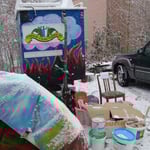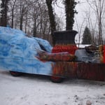 Das Wetter spielt ein wenig verrückt. Der grosse Wagen ist an die frische Luft gestellt und mit dem ersten Engel, der angeflogen kam, bestückt worden.